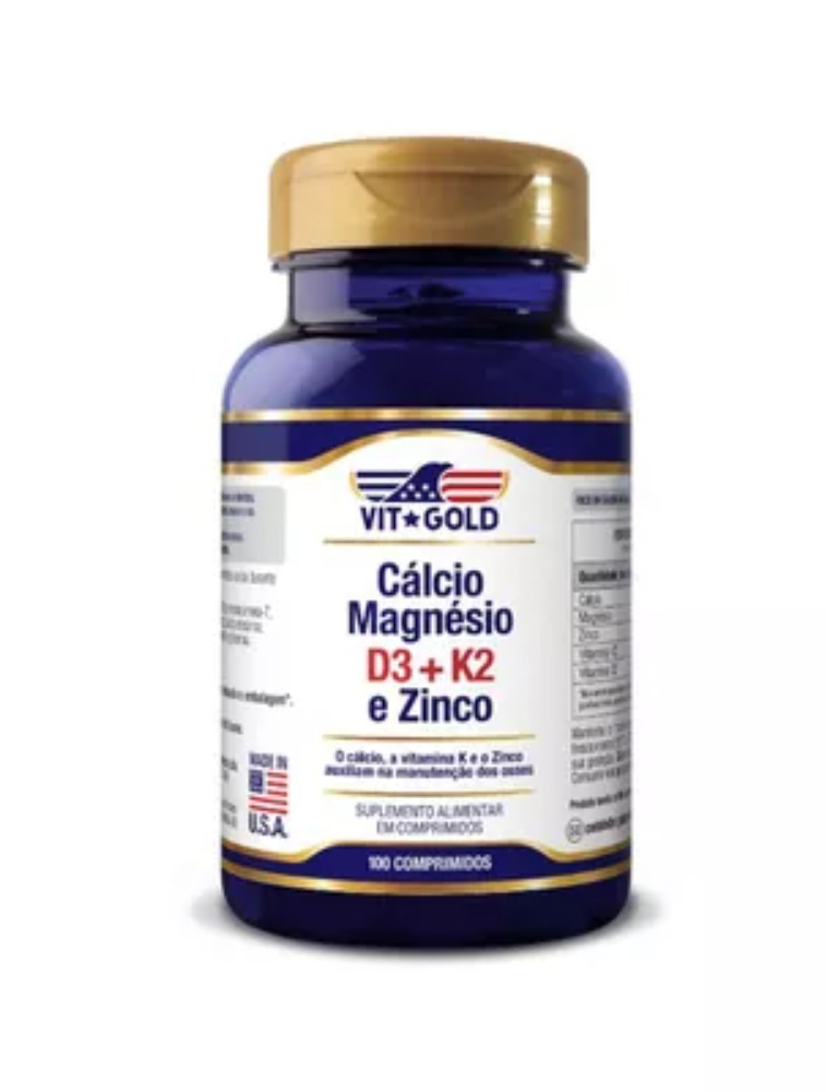 Cálcio enriquecido, com os minerais Magnésio e Zinco, além das Vitaminas D3 e K2.