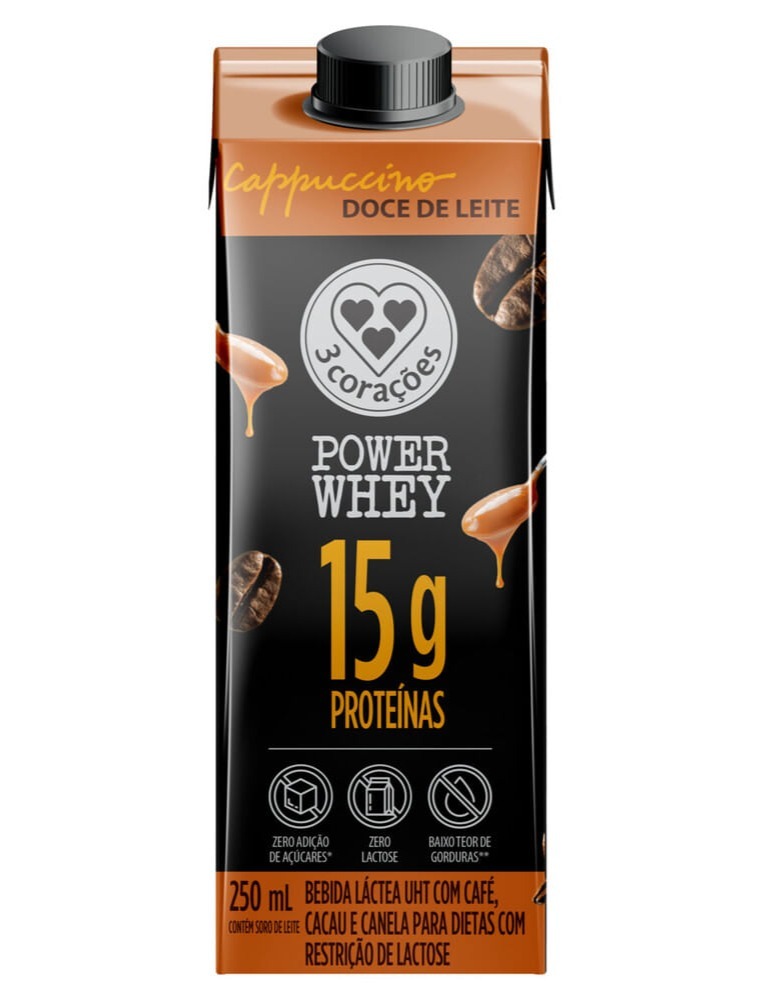 CAPPUCCINO POWER WHEY 250ML DOCE LEITE 3 CORAÇÕES