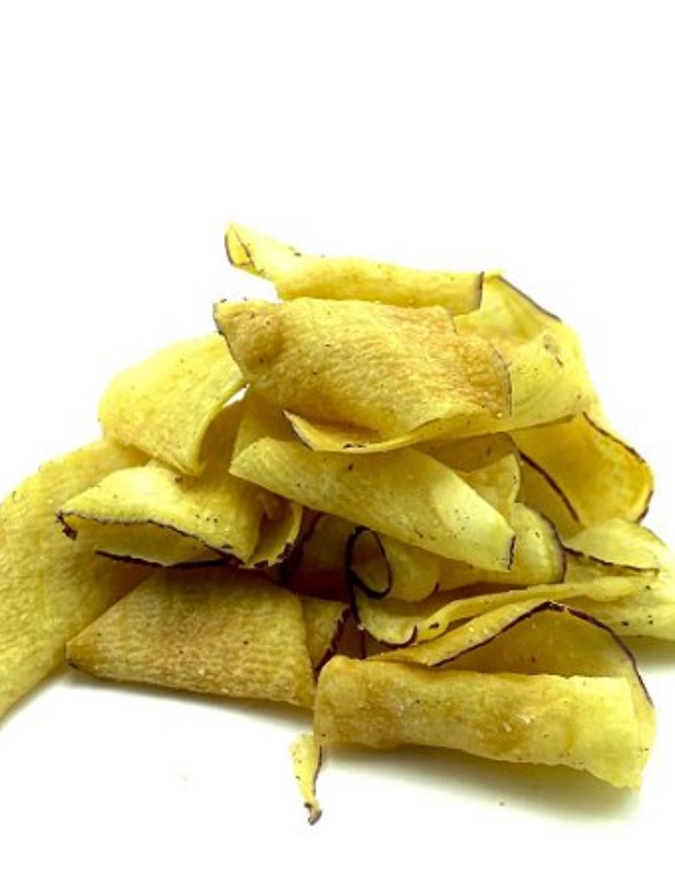 Batata doce, gordura vegetal de palma e sal marinho.