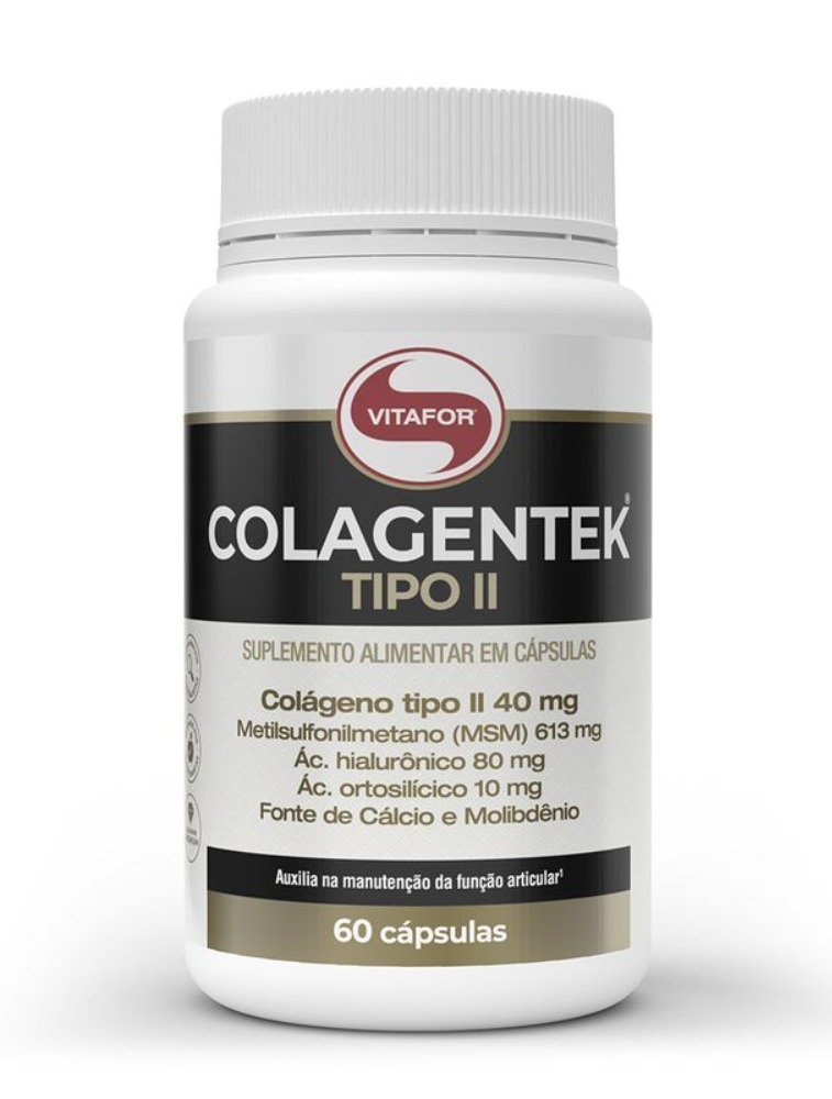 COLAGENTEK® TIPO II é um suplemento alimentar à base de colágeno tipo II, metilsulfonilmetano (MSM), ácido hialurônico, extrato de alho em pó (Allium sativum L.) e minerais, com zero adição de açúcares.