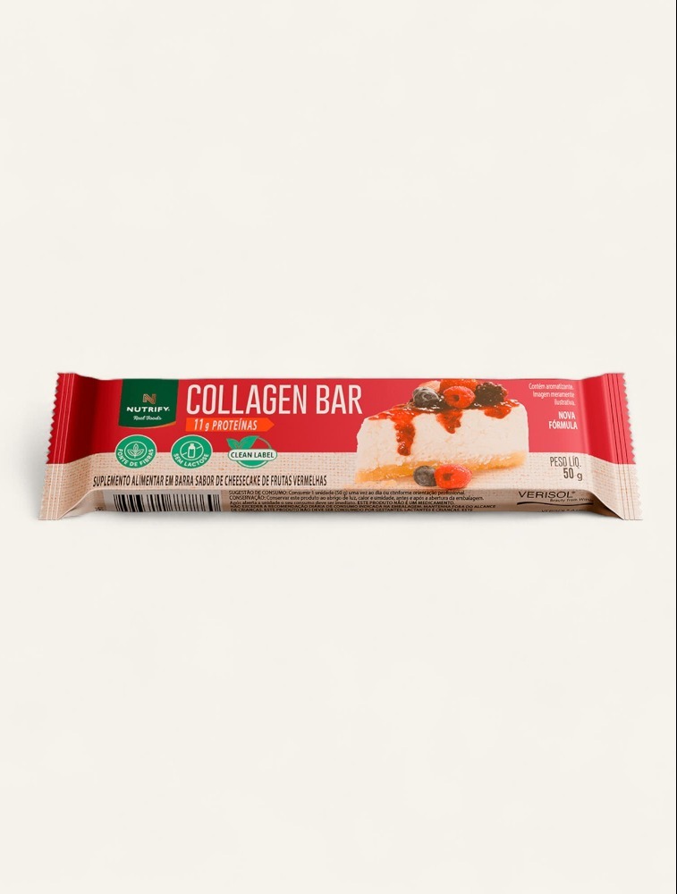 Descrição: COLLAGEN BAR oferece 11 g de proteína por porção para complementar sua ingestão diária de forma prática e saborosa. Sua fórmula exclusiva conta com 2,5 g de peptídeos bioativos de colágeno VERISOL®, dose ideal para auxiliar na manutenção da saúde da pele. Contém ainda a biotina, uma vitamina que contribui para a manutenção dos cabelos.