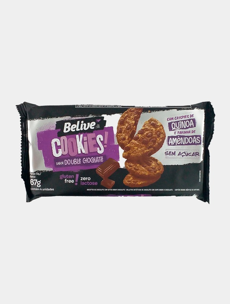 Ingredientes: Mix sem glúten (farinha de arroz, amido de milho, farinha de milho não transgênico, fécula de mandioca, farinha de amêndoas, farinha integral de grão-de-bico), gotas sabor chocolate amargo (sem açúcar), óleo de palma, crispies de quinoa, fibra solúvel (polidextrose), cacau em pó, ovo em pó, sal light, edulcorantes (maltitol e glicosídeos de esteviol), fermento químico (bicarbonato de sódio e amônio), emulsificantes (mono e diglicerídeos de ácidos graxos e goma xantana) e aromas.