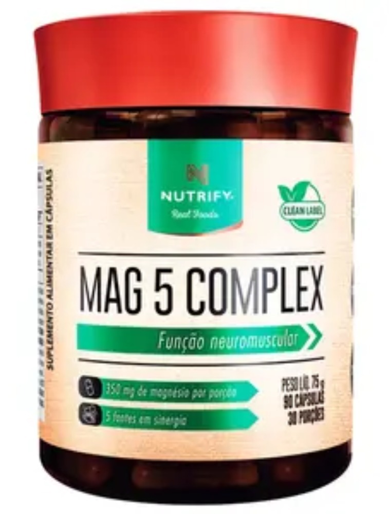 Descrição: 5 fontes de magnésio: Bisglicinato de magnésio, dimagnésio malato, sais de magnésio do ácido cítrico (citrato de magnésio), taurato de magnésio, ascorbato de magnésio.