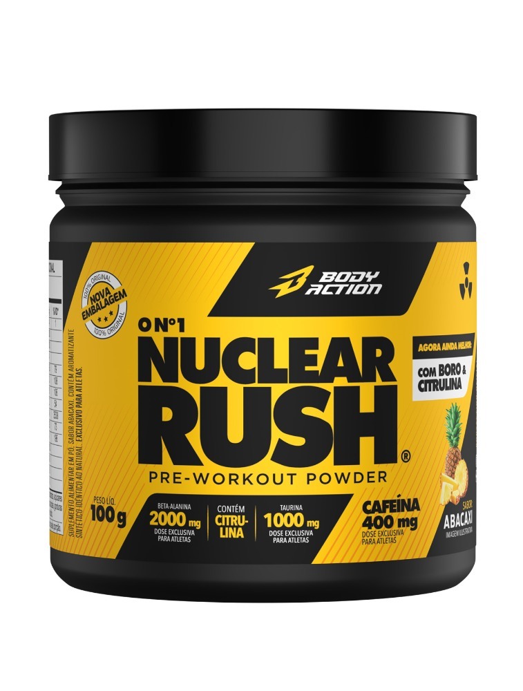 O Nuclear Rush Bodyaction é um pré-treino de alta performance, desenvolvido para maximizar energia, resistência e foco. Sua fórmula avançada combina Beta-Alanina, Taurina, L-Arginina e Cafeína Anidra.