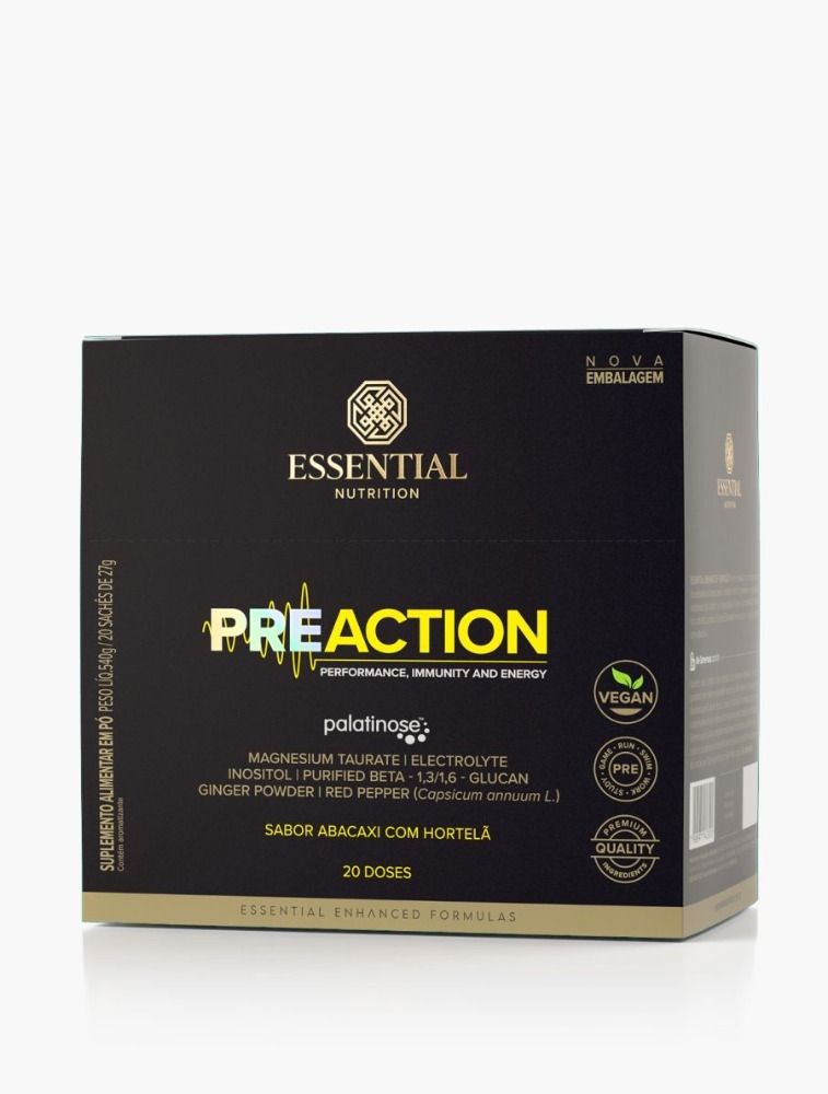 Pre-Action é um suplemento com componentes de liberação prolongada e elevado potencial energético, formulado com ingredientes inteligentes que trabalham em sinergia.