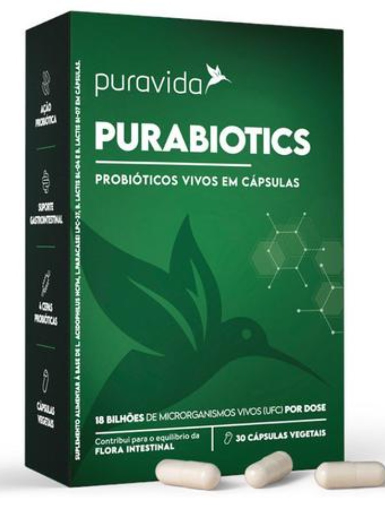 Dada a importância destes seres microscópicospara a saúde digestiva e o bom funcionamentointestinal, a Puravida desenvolveu o Purabiotics,com 4 espécies cuidadosamente selecionadas,somando 18 bilhões de microrganismosvivos por dose.
