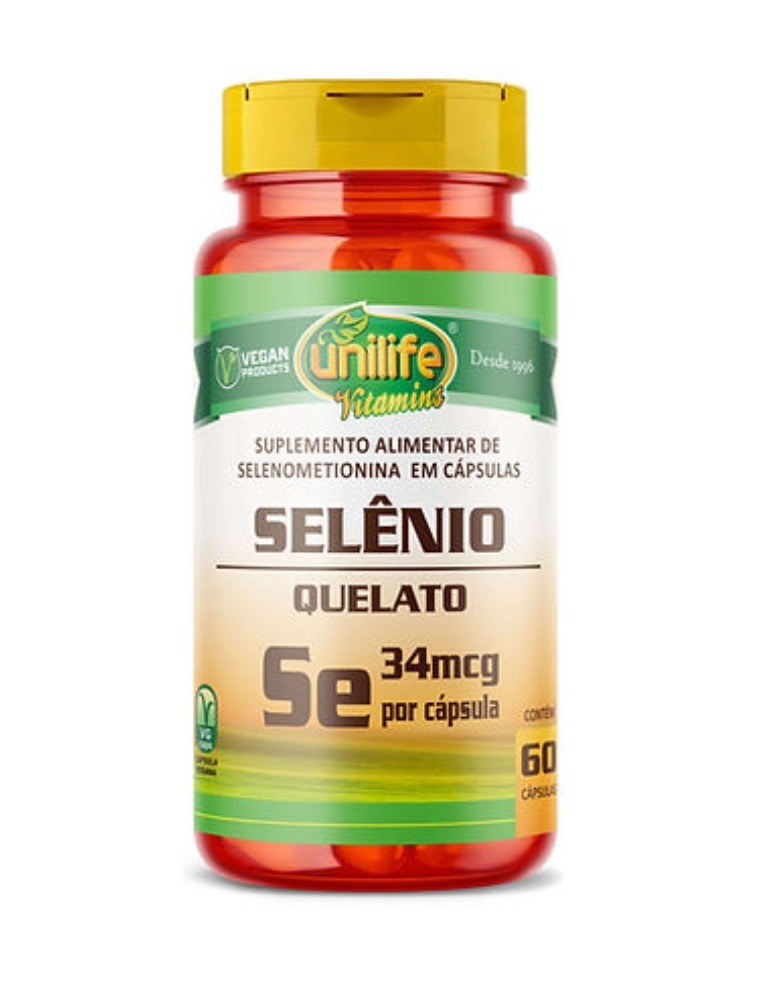 O Selênio Quelato Unilife Vitamins é um suplemento VEGANO, desenvolvido a partir de selenometionina. Livre de glúten. O selênio é um antioxidante que auxilia na proteção dos danos causados pelos radicais livres e no funcionamento do sistema imune.