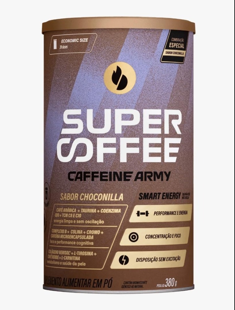Ingredientes: Triglicerídeos de cadeia média C8 + C10 (TCM), colágeno hidrolisado, cacau alcalino em pó, taurina, café arábica solúvel, L-tirosina, café verde moído, coenzima Q10, bitartarato de colina, cafeína microencapsulada, L-carnitina L-tartarato, especiarias, complexo de vitaminas B (tiamina mononitrato (vitamina B1), nicotinamida (vitamina B3), D-pantotenato de cálcio (vitamina B5), cloridrato de piridoxina (vitamina B6), ácido N-pteroil-L-glutâmico (vitamina B9), cianocobalamina (vitamina B12)), picolinato de cromo, aromatizantes, regulador de acidez bicarbonato de sódio e edulcorante glicosídeos de esteviol de Stevia rebaudiana Bertoni. ALÉRGICOS: CONTÉM DERIVADOS DE LEITE. PODE CONTER SOJA. NÃO CONTÉM GLÚTEN.