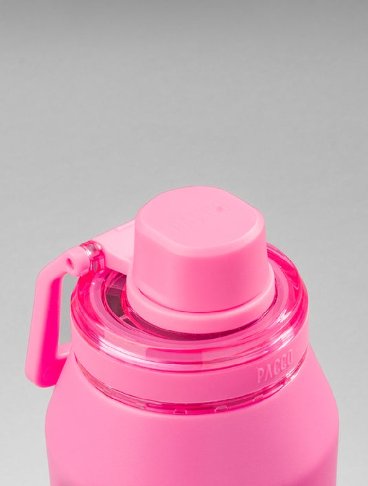 A alça flexível presente da tampa da garrafa, facilita o transporte e permite que a garrafa se movimente de maneira confortável, prática e segura.