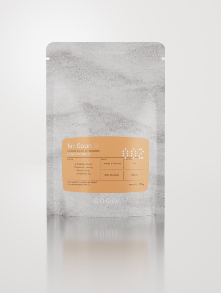 Tan Soon é um suplemento em pó, enriquecido com carotenóides e Vitamina A, que age de dentro para fora promovendo um bronzeado uniforme e duradouro, enquanto prepara e protege a pele dos efeitos dos raios solares.