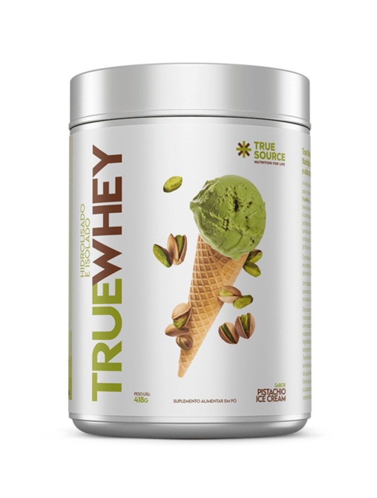 O True Whey sabor pistachio ice cream é adoçado com estévia, taumatina e eritritol, adoçantes naturais, além de ser livre de qualquer corante ou aditivo artificial.