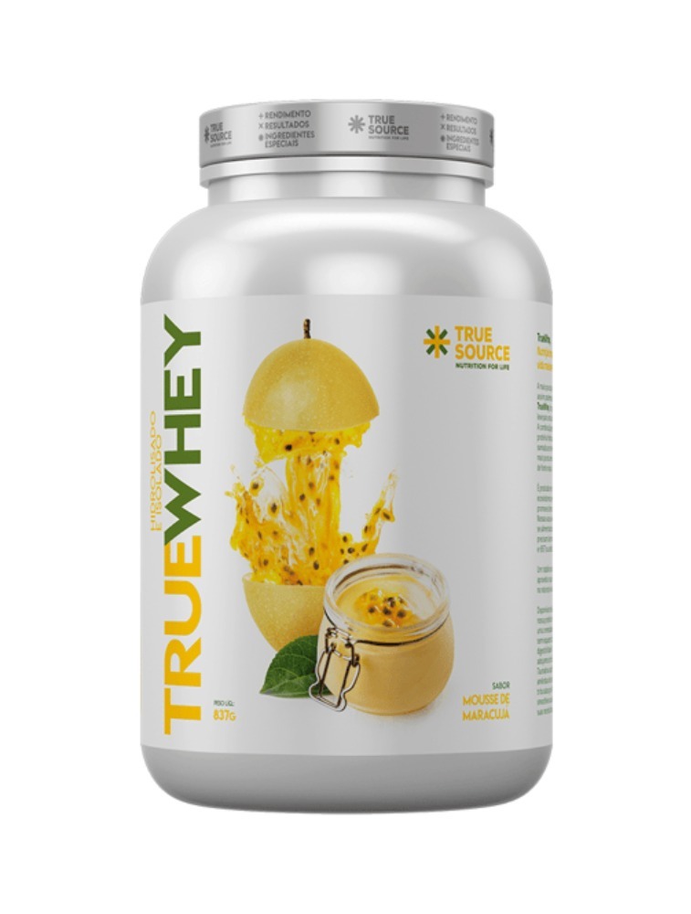 O True Whey sabor mousse de maracujá é adoçado com estévia, taumatina e maltitol, adoçantes naturais, além de ser livre de qualquer corante ou aditivo artificial.