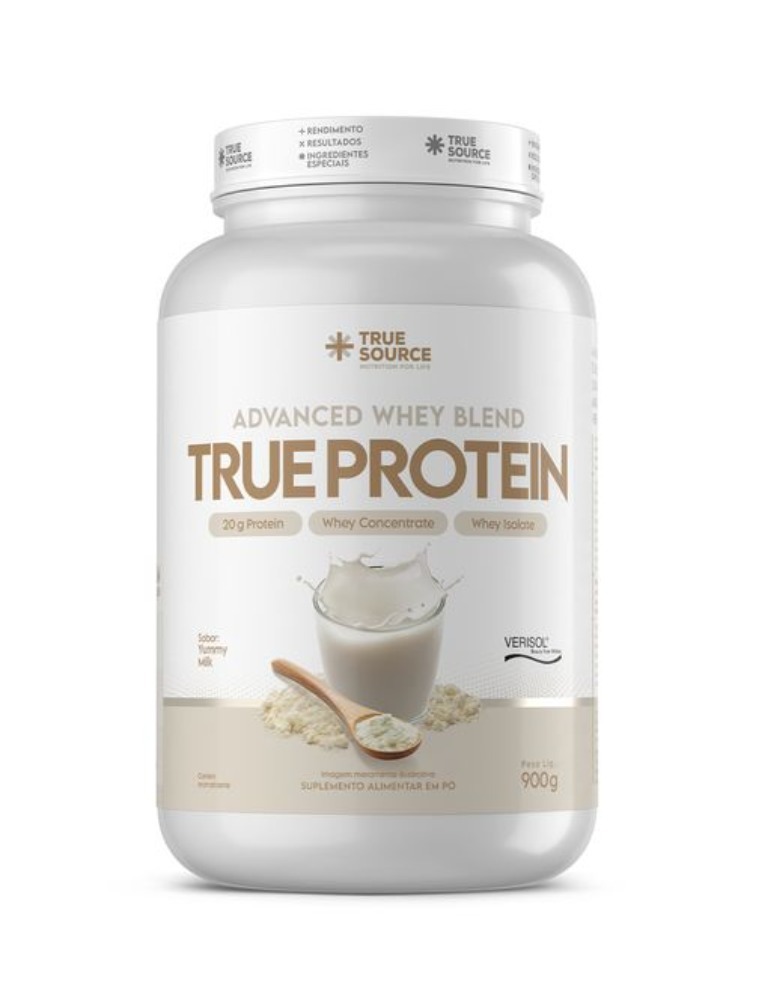 True Protein une proteínas concentrada e isolada do soro do leite, colágeno hidrolisado e Verisol® – proporcionando alto valor biológico, excelente absorção e benefícios para a saúde muscular, pele, unhas, cabelos e intestino.