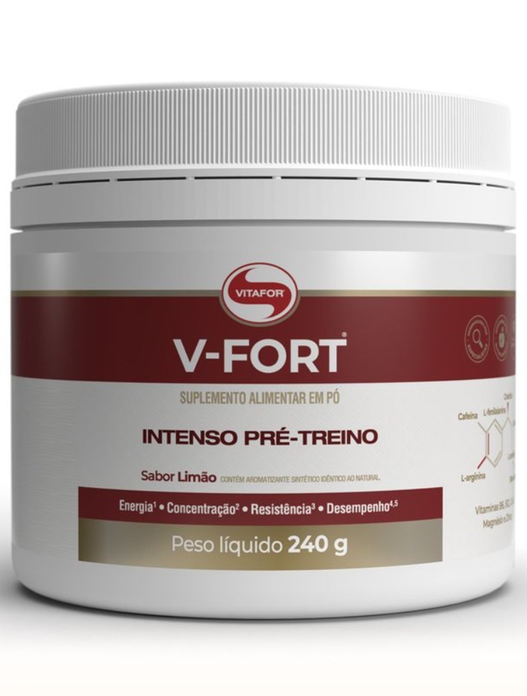 Pré-treino é um suplemento alimentar que traz nutrientes necessários para apoiar o desempenho do atleta. V-FORT® é o Pré-treino da Vitafor, com fórmula inovadora. Fonte de Creatina, Beta-alanina, Cafeína, L-Carnitina e L- Arginina.